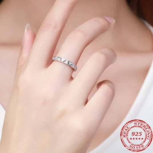 Anel Romântico Design Triângulos Prata 925 com Zircônia