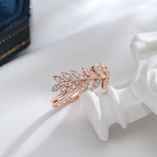 Anel Folha com Zircônia Banhado a Ouro Rosé 585