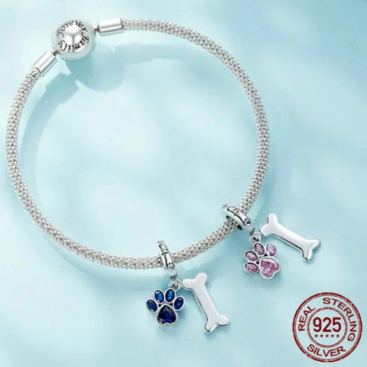 Berloque Pata de Cachorro e Osso com Zircônia Prata 925
