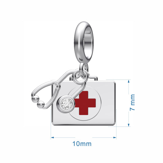 Berloque Maleta de Primeiros Socorros e Estetoscópio com Zircônia Prata 925