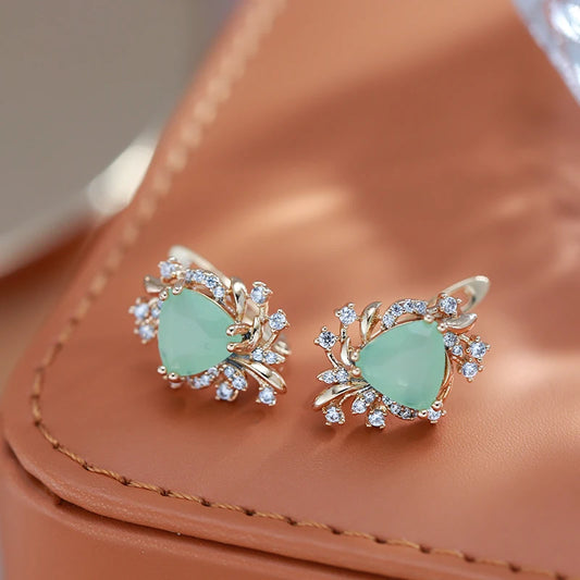 Brincos de Flor de Cristal com Zircônia Natural Verde Banhado a Ouro Rosé