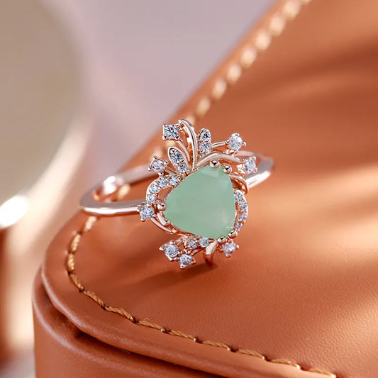 Anel de Flor de Cristal com Zircônia Natural Verde Banhado a Ouro Rosé